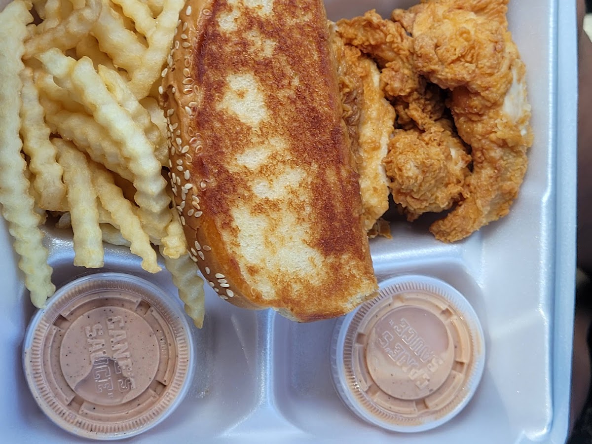 Walking into the restaurant, you’ll immediately notice the casual and welcoming vibe. The menu may look simple at first, but each item is crafted with care, and the focus is squarely on quality chicken. The Caniac Combo is a must-try, offering an irresistible combination of chicken fingers, crinkle-cut fries, Texas toast, and Cane’s signature sauce. For a refreshing beverage to go along with your meal, their Sweet Tea is the perfect complement to the savory flavors. If you’re more into smaller portions or lighter options, items like Chicken Nuggets, Bare Chicken, or the Chicken Club Salad are great picks.